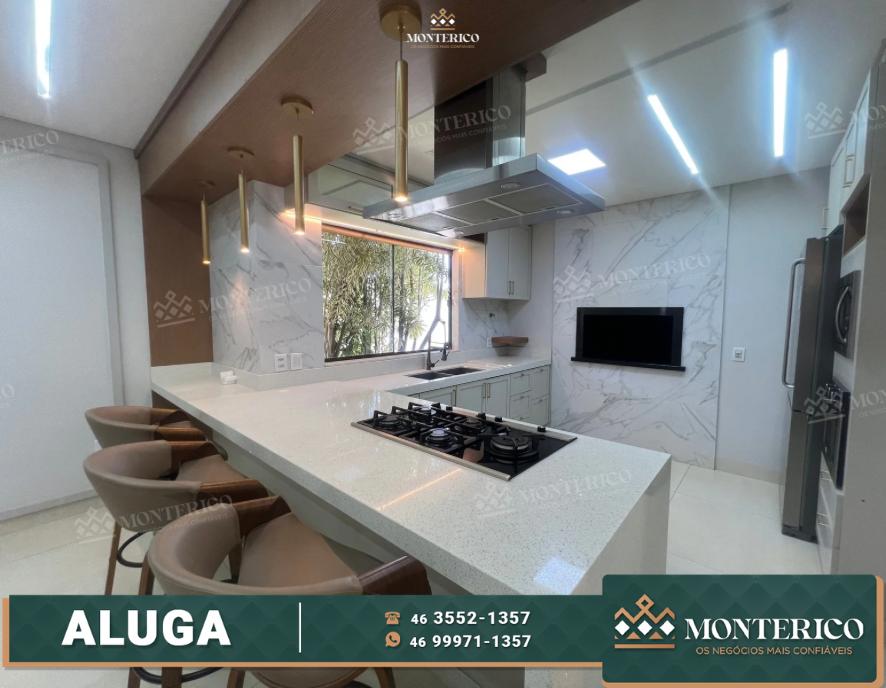 Possuindo 01 suíte com closet, 03 quartos, sala de estar com lareira, rack e ar condicionado, sala de jantar com mesa e cadeiras, cozinha planejada com fogão cooktop, geladeira, forno, microondas e churrasqueira, 03 banheiros sociais, lavanderia, área gourmet com piscina, garagem, portão eletrônico e terreno murado.